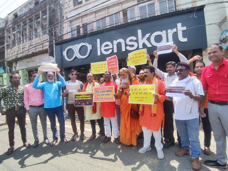 लेंसकार्ट के कथित ड्रेस कोड को लेकर शुरू हुआ विवाद अब सड़कों पर उतर आया है। भोपाल के न्यू मार्केट रोशनपुरा इलाके में हिंदू संगठनों ने शोरूम के बाहर प्रदर्शन कर अपनी नाराजगी जताई। सोशल मीडिया पर वायरल एक कथित पॉलिसी दस्तावेज के बाद यह मामला तेजी से तूल पकड़ता गया। हिंदू उत्सव समिति के कार्यकर्ताओं ने शोरूम के बाहर जुटकर नारेबाजी की। इस दौरान कर्मचारियों को तिलक लगाया गया और मंत्रोच्चार के साथ कलावा बांधा गया। प्रदर्शनकारियों का कहना है कि धार्मिक प्रतीकों का सम्मान हर हाल में होना चाहिए।