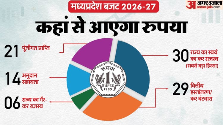 सरकारी खजाने में आने वाले प्रत्येक 1 रुपये में से 30% (30 पैसे) हिस्सा राज्य के अपने करों से आएगा। केंद्रीय करों में हिस्सेदारी और वित्तीय हस्तांतरण से 29% (29 पैसे) प्राप्त होगा। पूंजीगत प्राप्ति का हिस्सा 21% (21 पैसे) रहेगा। विभिन्न योजनाओं के लिए मिलने वाला अनुदान 14% (14 पैसे) रहेगा। वहीं, गैर-कर राजस्व यानी अन्य स्रोतों से होने वाली आय 6% (6 पैसे) होगी।
