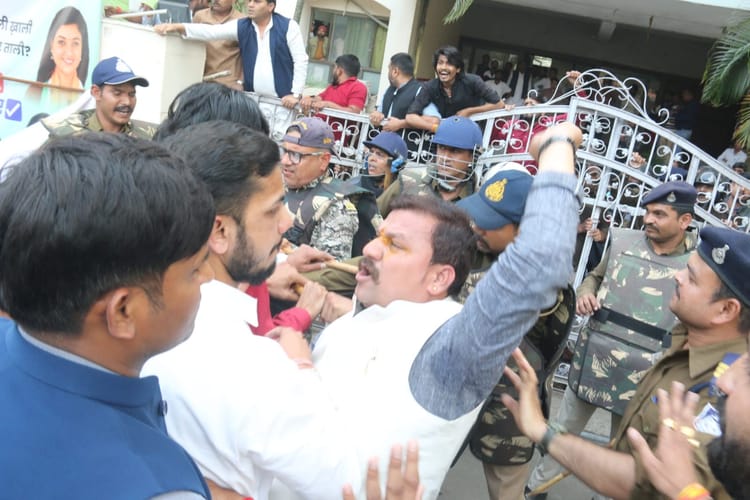 दिल्ली में आयोजित ‘इंडिया AI इम्पैक्ट समिट 2026’ के दौरान यूथ कांग्रेस के शर्टलेस प्रदर्शन को लेकर शुरू हुआ विवाद अब मध्य प्रदेश की सड़कों तक पहुंच गया है। शनिवार को भारतीय जनता युवा मोर्चा ने प्रदेशभर में कांग्रेस कार्यालयों के घेराव का आह्वान किया, जिसके तहत भोपाल में प्रदेश कांग्रेस कार्यालय के बाहर जोरदार प्रदर्शन हुआ और स्थिति टकराव में बदल गई। युवा मोर्चा के कांग्रेस कार्यालय पहुंचने से पहले ही कांग्रेस कार्यकर्ता गेट पर एकत्र हो गए थे। दोनों पक्षों के बीच तीखी नारेबाजी हुई, जो बाद में धक्का-मुक्की और पथराव में बदल गई।