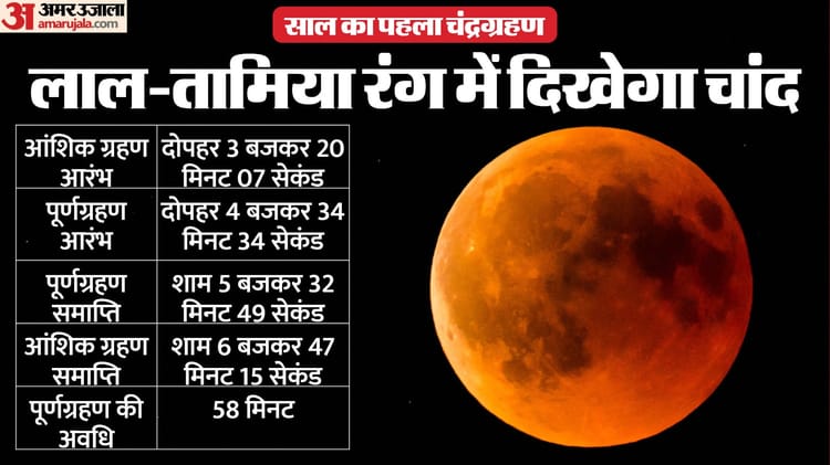 होली के रंगों के बीच चंद्रमा भी तामिया लाल सा दिखकर होली खेलने जा रहा है। 3 मार्च, मंगलवार को पूर्णिमा पर पूर्ण चंद्रग्रहण की खगोलीय घटना होने जा रही है। इसमें चंद्रमा पृथ्वी की पूर्ण छाया में से होकर गुजरेगा, जिससे यह गहरे लाल या तांबे जैसे रंग का दिखाई देगा। नेशनल अवार्ड प्राप्त विज्ञान प्रसारक सारिका घारू ने बताया कि भारत में इसे आंशिक चंद्रग्रहण के रूप में शाम को केवल कुछ मिनट के लिए ही देखा जा सकेगा। यह ग्रहण ग्रस्तोदय के रूप में नजर आएगा, जिसमें चंद्रोदय के समय ही चंद्रमा पर ग्रहण लगा हुआ होगा। चंद्रग्रहण की यह घटना एशिया, ऑस्ट्रेलिया, नार्थ अमेरिका के शहरों में दिखाई देगी।