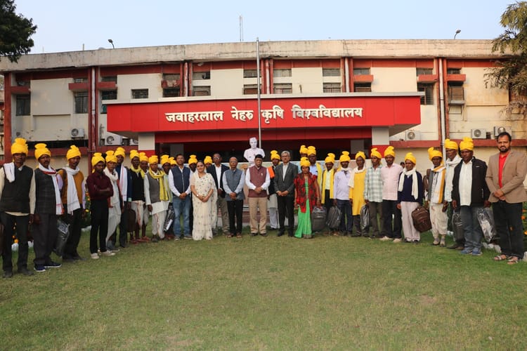 जवाहरलाल नेहरू कृषि विश्वविद्यालय के जेनेटिक्स एवं प्लांट ब्रीडिंग विभाग द्वारा “पादप किस्म संरक्षण एवं कृषक अधिकार” विषय पर एक दिवसीय प्रशिक्षण-सह-जागरूकता कार्यक्रम का आयोजन स्वामी विवेकानंद सभागार में किया गया। कार्यक्रम के मुख्य अतिथि विश्वविद्यालय के कुलपति डॉ. प्रमोद कुमार मिश्रा रहे, जबकि अध्यक्षता संचालक अनुसंधान सेवाएं डॉ. जी.के. कटु ने की। कार्यक्रम में कृषि महाविद्यालय जबलपुर के अधिष्ठाता डॉ. जयंत भट्ट और संचालक विस्तार सेवाएं डॉ. टी.आर. शर्मा विशिष्ट अतिथि के रूप में उपस्थित रहे। इस अवसर पर देशी धान की विभिन्न पारंपरिक किस्में उगाने वाले किसानों को कुलपति ने रोली-तिलक और पगड़ी पहनाकर सम्मानित किया तथा पादप किस्म संरक्षण एवं कृषक अधिकार प्रमाण पत्र प्रदान किए।