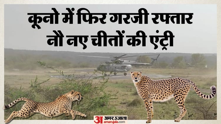 चीता परियोजना के लिए दक्षिण अफ्रीका के बोत्सवाना से 9 चीते सुरक्षित रूप से कूनो नेशनल पार्क पहुंच चुके हैं। लगभग 12 घंटे की हवाई यात्रा के बाद वे ग्वालियर एयरफोर्स स्टेशन पहुंचे, जहां से तीन हेलीकॉप्टरों के जरिए उन्हें कूनो लाया गया। नई खेप के साथ देश में चीतों की कुल संख्या 39 से बढ़कर 48 हो गई है।
