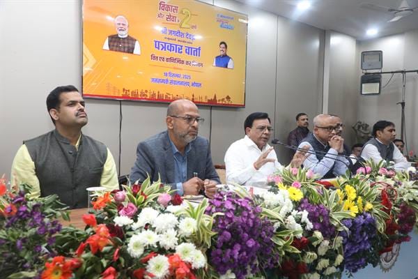 गुरुवार को भोपाल के जनसंपर्क सभागार में डिप्टी सीएम जगदीश देवड़ा ने सरकार की दो साल के कार्यकाल की उपलब्धियों को गिनाया। देवड़ा ने बताया कि पूंजीगत व्यय में वृद्धि से प्रदेश के सकल राज्य घरेलू उत्पाद में लगातार बढ़ोतरी हो रही है और राज्य “विकसित भारत-2047” के संकल्प में योगदान देने के लिए प्रतिबद्ध है। वित्तीय वर्ष 2024-25 में प्रदेश को 55,634 करोड़ रुपये का राजस्व प्राप्त हुआ, जबकि 2025-26 में नवंबर माह तक 34,829 करोड़ रुपये का राजस्व अर्जित किया जा चुका है।