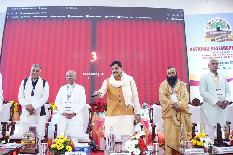 मुख्यमंत्री डॉ. मोहन यादव ने मप्र विज्ञान एवं प्रौद्योगिकी परिषद् के विज्ञान भवन में आयोजित राष्ट्रीय शोधार्थी समागम – 2026 में सहभागिता कर अपने विचार साझा किए।कार्यक्रम में मुख्यमंत्री डॉ. यादव ने ‘International Conference on Mahakal – The Master of Times’ की आधिकारिक वेबसाइट एवं ब्रोशर का लोकार्पण किया तथा दत्तोपंत ठेंगड़ी शोध संस्थान द्वारा प्रकाशित पुस्तकों का विमोचन भी किया। राष्ट्रीय शोधार्थी समागम में देशभर से आए शोधार्थियों, शिक्षाविदों और विशेषज्ञों की सहभागिता रही। आगामी 14 फरवरी तक चलने वाले इस समागम में शोध, विज्ञान और नवाचार के विविध आयामों पर विमर्श होगा।