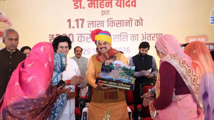 मुख्यमंत्री डॉ. मोहन यादव ने कहा है कि भावांतर भुगतान योजना किसानों की कठिन तपस्या, साधना और समर्पण का सम्मान है। किसान हमारी संस्कृति की नींव और प्रदेश की अर्थव्यवस्था के वास्तविक कर्णधार हैं। सरकार हर परिस्थिति में किसानों का संबल बनकर उनके साथ खड़ी है। मुख्यमंत्री डॉ. यादव गुरुवार को मंदसौर जिले के मल्हारगढ़ में आयोजित अन्नदाता सम्मान समारोह को संबोधित कर रहे थे। इस अवसर पर उन्होंने भावांतर भुगतान योजना की अंतिम किश्त के रूप में प्रदेश के 1 लाख 17 हजार किसानों के खातों में लगभग 200 करोड़ रुपये की राशि अंतरित की। मुख्यमंत्री ने बताया कि योजना के प्रारंभ से अब तक 7 लाख 10 हजार से अधिक किसानों को लगभग 1500 करोड़ रुपये की भावांतर राशि प्रदान की जा चुकी है। मुख्यमंत्री ने कहा कि इस योजना से सोयाबीन उत्पादक किसानों को उनकी फसल का पूरा दाम मिला है। मंदसौर जिले के 27 हजार से अधिक किसानों को करीब 43 करोड़ रुपये की भावांतर राशि दी गई है। इस अवसर पर मुख्यमंत्री ने जिले के पांच पात्र किसानों को भावांतर राशि के चेक भी वितरित किए।