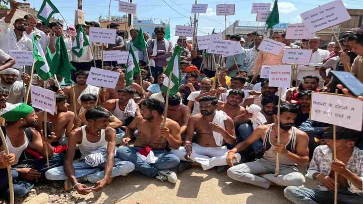 प्रर्दशनकारी किसानों का आरोप खाद के लिए परेशान
